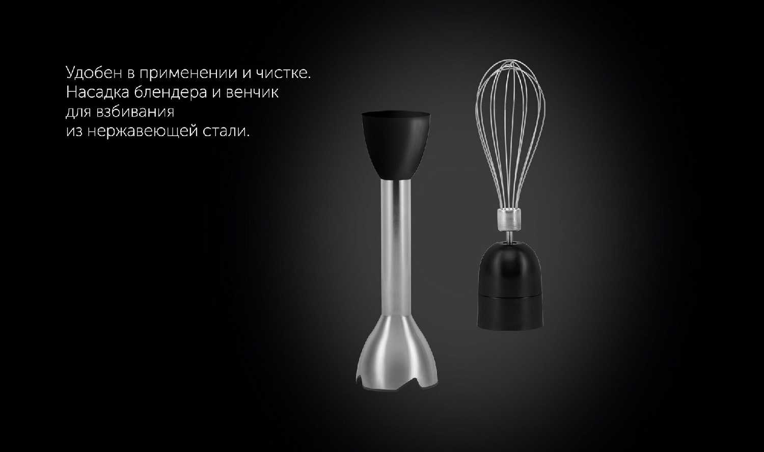 Пользователи отмечают, что все насадки (погружная нога, венчик, измельчитель) крепятся к моторному блоку четко и плотно, без люфтов. Стыковка простая и надежная, насадки не болтаются и не соскакивают во время работы. Это обеспечивает безопасность и стабильность работы прибора даже на высоких скоростях. -