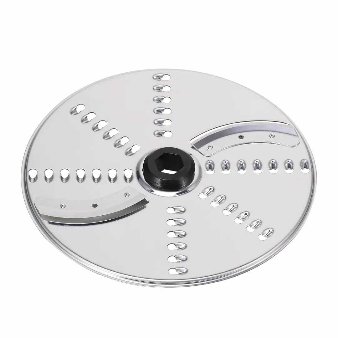 - Шинковочный диск создает тонкую соломку капусты для салатов, а терка для драников натирает овощи.