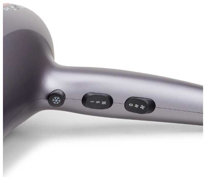 - При длине корпуса 23 см фен кажется громоздким для пользователей с маленькой ладонью.