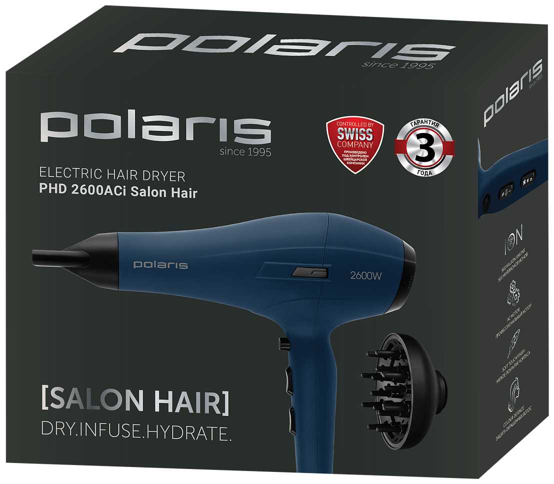 Очень хороший фен, в нем много насадок. Сушит волосы просто супер, у меня был старый фен и он сушил волосы гораздо дольше чем этот. Также в нем есть холодный воздух, это большой плюс ведь им гораздо лучше сушить волосы. Этот фен очень мощный и красивый, думаю что буду им пользоваться ближайшие несколько лет. Спасибо бренд поларис за такой прекрасный фен