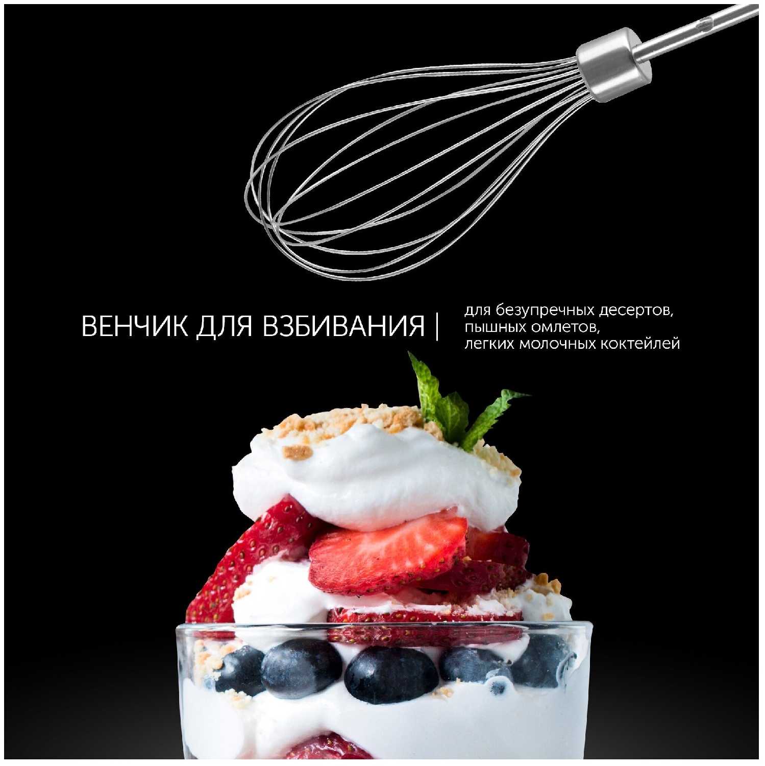 - Подходит для взбивания яиц, сливок, приготовления соусов, жидкого теста и кремов.