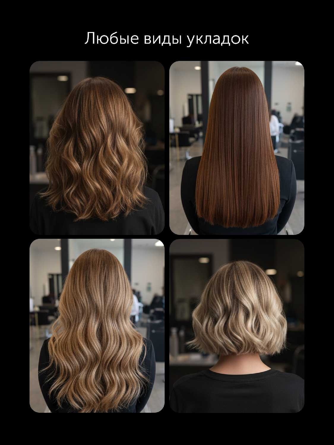- Подходит для разных типов волос и сценариев, от прикорневого объема до полной укладки, без необходимости в дополнительных инструментах.