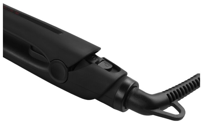 Длинный шнур, есть фиксатор, чехол, который трансформируется в коврик для щипцов.