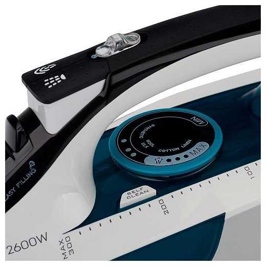 - Мощность 2600 Вт обеспечивает эффективное разглаживание плотных тканей, таких как джинса и постельное бельё.