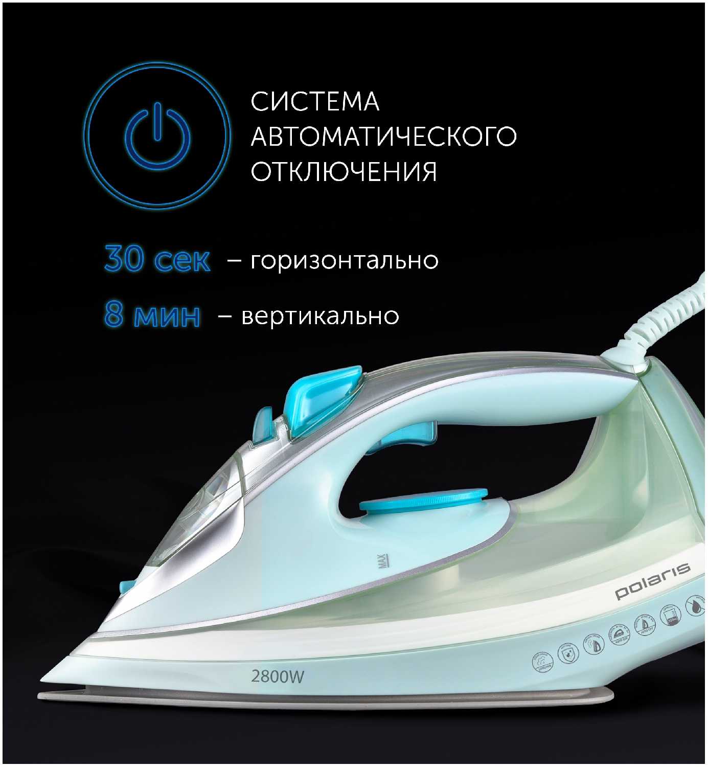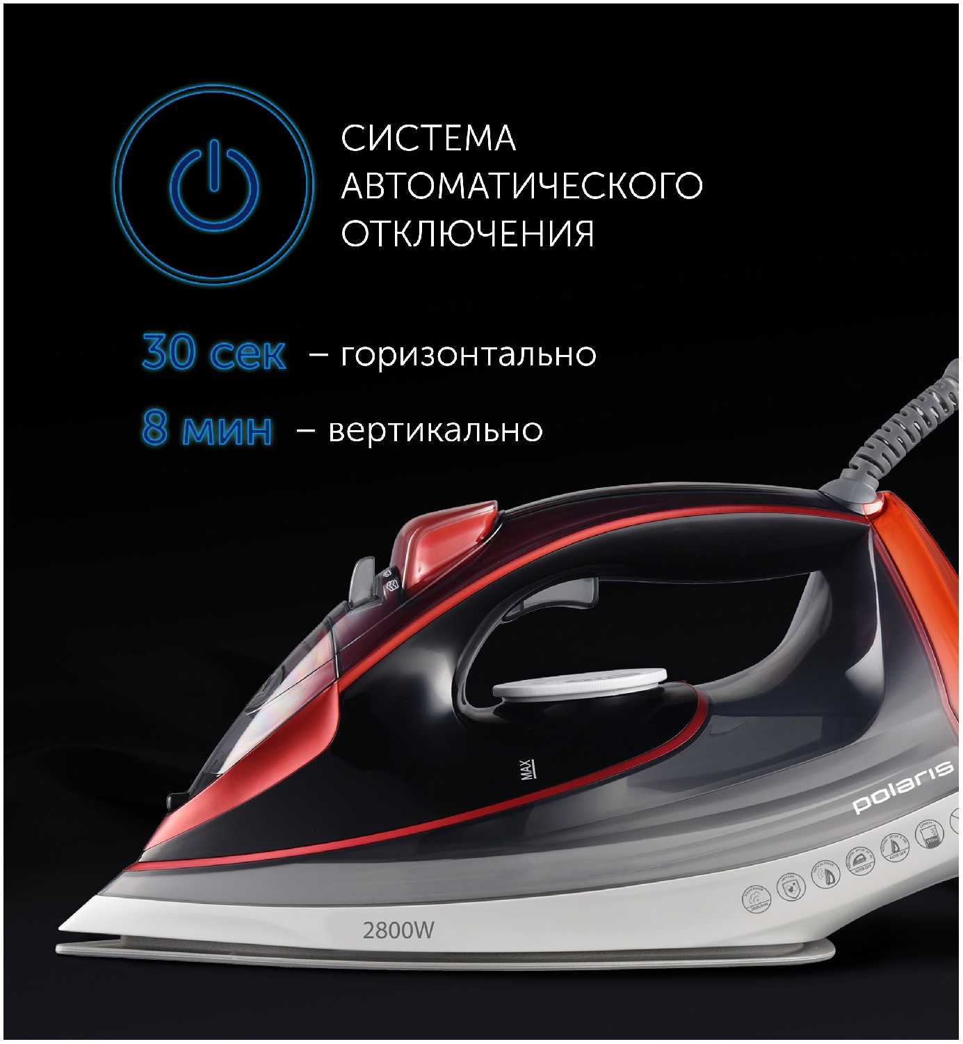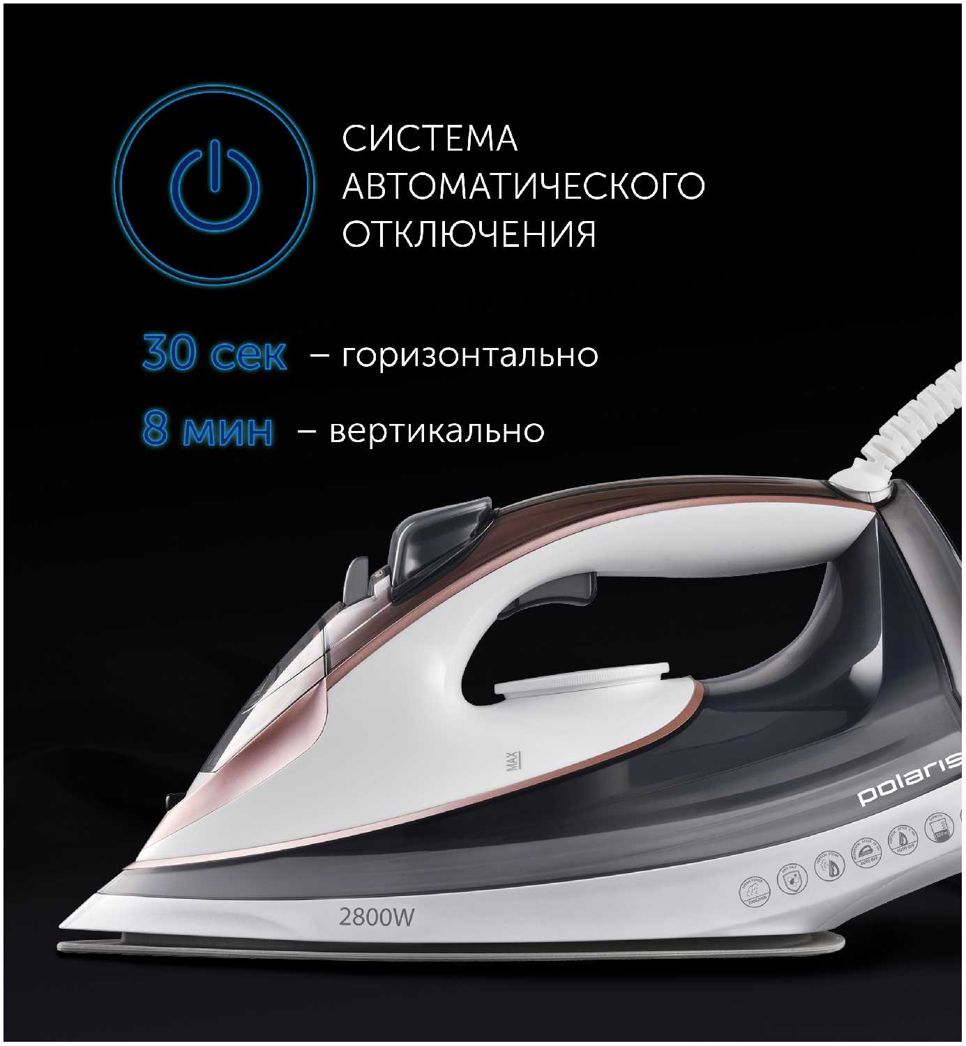 - Быстрый нагрев подошвы благодаря мощности 2800 Вт: