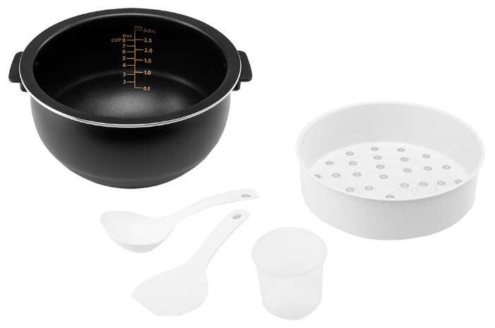 - - В характеристиках заявлена чаша 4л, а по факту 3л. Набор приборов, идущих в комплекте, лучше заменить на деревянные. Сделаны они из очень жёсткого пластика и думаю будут царапать покрытие чаши.
