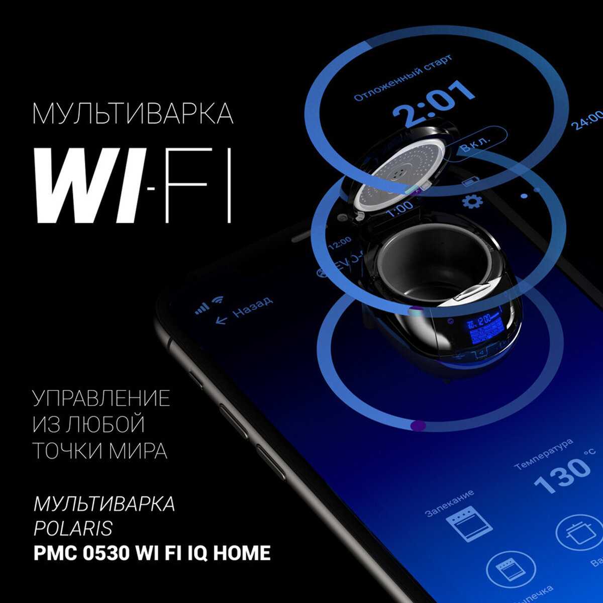 Управление осуществляется через мобильное приложение Polaris IQ Home, позволяя запускать программы, контролировать процесс готовки и получать уведомления. Некоторые пользователи отмечают задержки синхронизации данных в реальном времени, однако уведомления о завершении приготовления приходят стабильно. Для корректной работы требуется стабильное подключение к сети 2.4 ГГц, а радиус действия модуля Wi-Fi ограничен — рекомендуется размещать мультиварку близко к роутеру. -