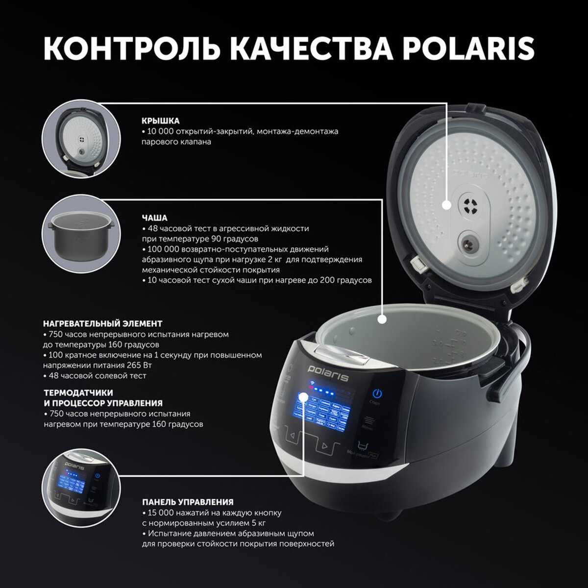 - Синхронизация с приложением Polaris IQ Home для доступа к 700+ рецептам с пошаговыми инструкциями.