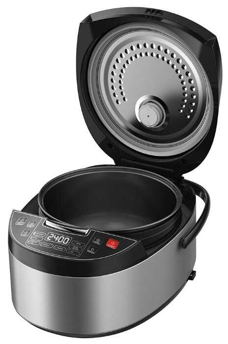 Нравится способ открывания крышки. Оптимальный размер чаши. Простота в управлении программами приготовления, интуитивно все понятно, логично. Стильно оформлена. Не высокая, удобно убирать в шкаф.