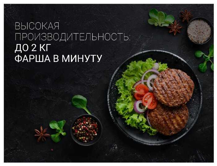 Эффективна и способна обработать до 3 кг мяса в минуту, что существенно ускоряет процесс приготовления пищи, хорошое измельчение.