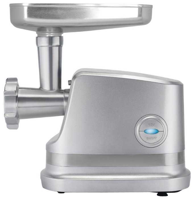 - + Недорогая. Максимальная мощность в 3кВт, не подклинивает и не греется даже при перемалывании жесткого жилистого мяса. В комплекте насадки для колбасы, кеббе, и 3 диска под фарш различного диаметра.