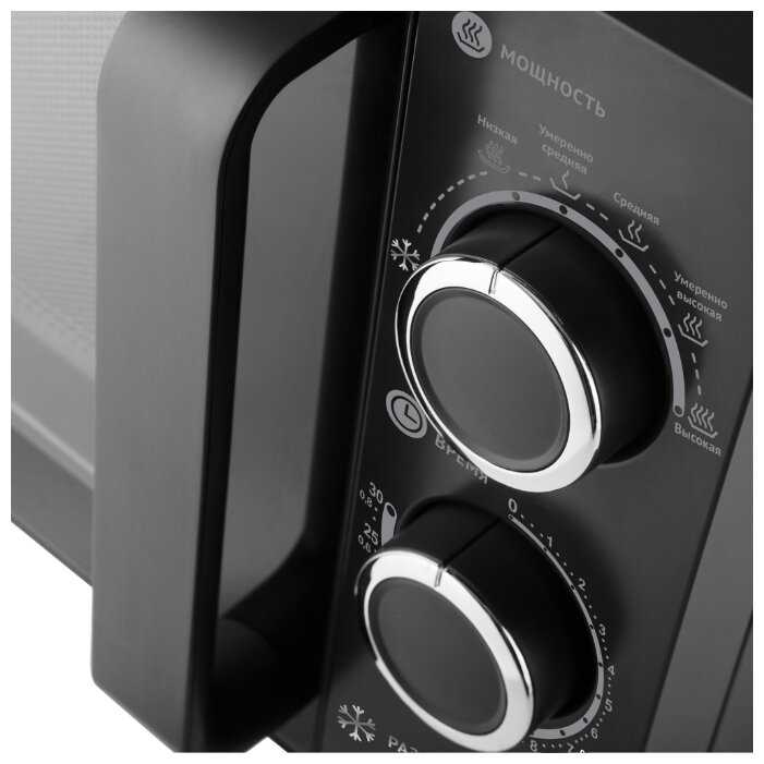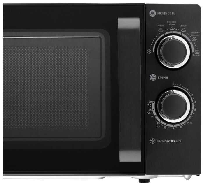- Шесть уровней мощности (от 280 до 700 Вт плюс разморозка) для разных задач.