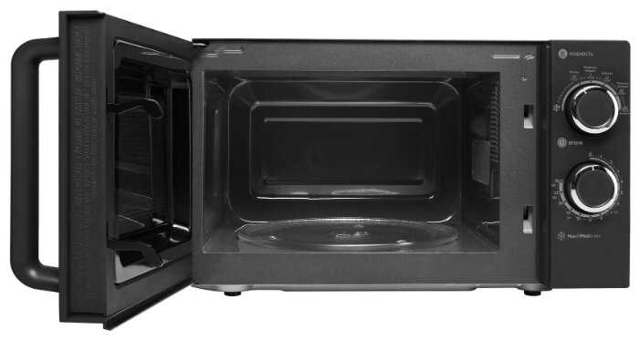 - + Неплохо выглядит. Компактная. Управление полностью механическое - лишь две поворотные ручки, одна для мощности, другая для времени готовки, так что не запутаться. Причем прямо в процессе приготовления блюда можно с помощью этих поворотных ручек менять время приготовления или мощность микроволн. Если во время приготовления открыть дверцу, процесс остановится, а если дверцу снова закрыть, то процесс готовки продолжится. В качестве поворотного столика в этой микроволновке две вещи: стеклянное блюдо и подставка на роликах под него.