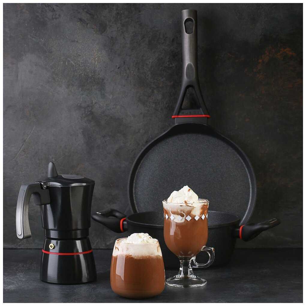 - + Красивый дизайн! Отличное качество, антипригарное покрытие, подходит для всех видов плит! Удобная крышка с окошком, позволяет увидеть происходящее внутри, можно следить за степенью готовности кофе!