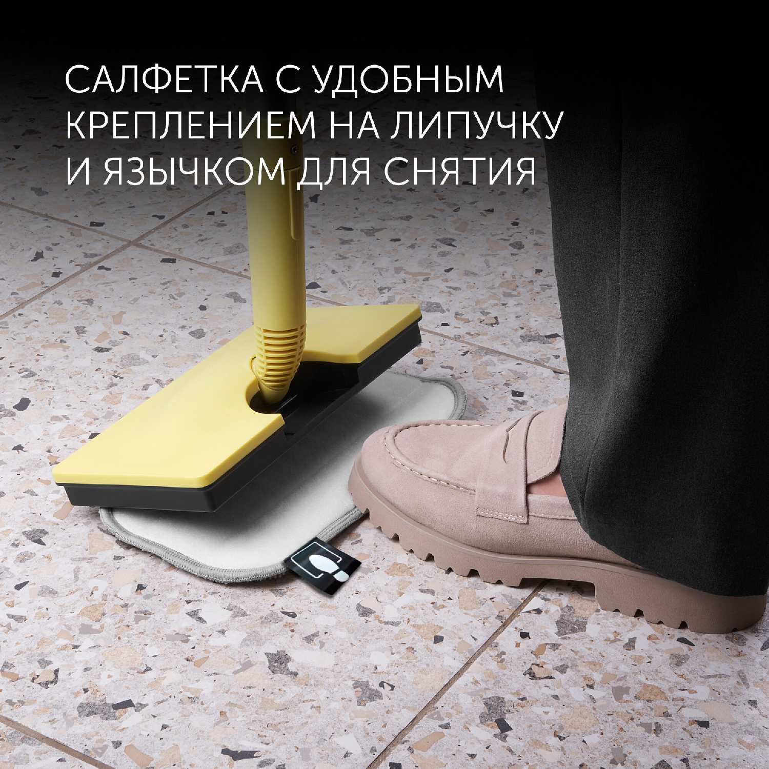 - Насадка-швабра с велюровыми тряпками на липучках обеспечивает быструю уборку полов (линолеум, плитка) без разводов.