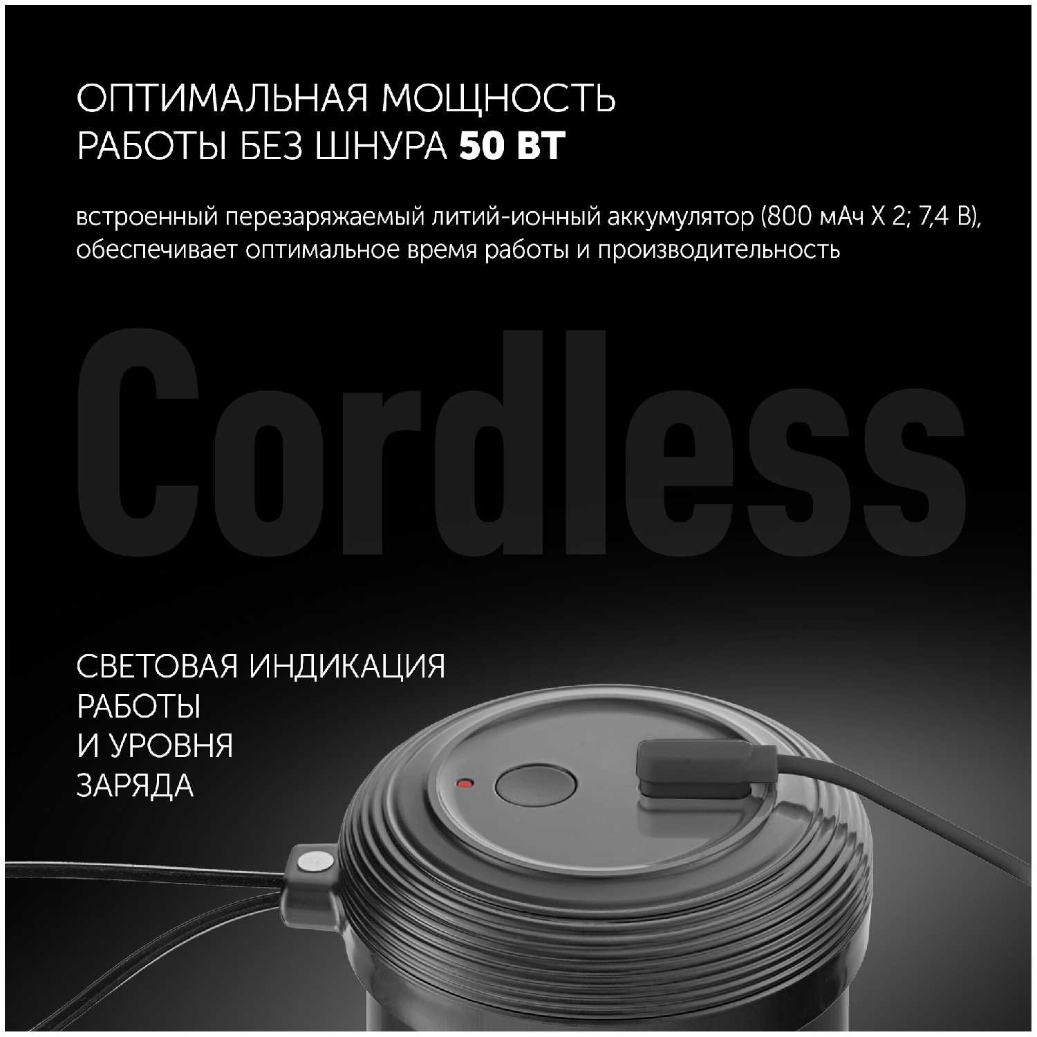 - Малые габариты (помещается в подстаканник автомобиля) и вес (лёгкий корпус) позволяют брать блендер в поездки, на прогулки или тренировки.
