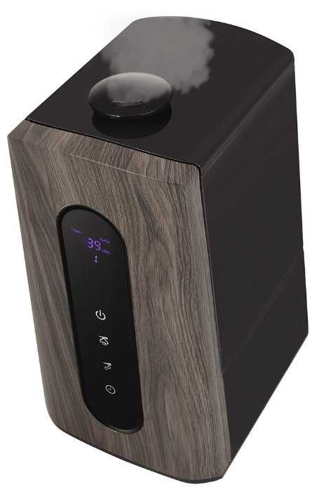 5-ти литровый бак, это большой плюс. Цветовое решение и фасадная отделка под крашенное дерево позволит вписать этот девайс практически в любой интерьер, увлажнитель выглядит компактно и стильно. Порадовала также сенсорная панель, на которой представлены основные показатели и режимы работы. (Таймер, Температура, Влажность, Интенсивность увлежнения 3 ступени) и скорость перехода в спящий режим.