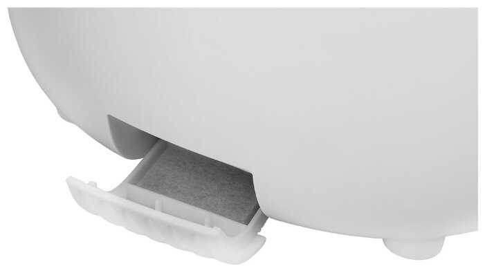 Сверху, не открывая крышку, заливаю фильтрованную из магазина 5 литровку. Одной сенсорной кнопкой и включаю и выбираю режим подачи пара, собственно, и всё. Хочу отметить, что за все время использования( 3 недели) не обнаружил ни луж под, ни влаги вокруг увлажнителя. мои 40 кв м орошает нормально. резервуар под воду, пока чистый,но все места легкодоступны для промывки.