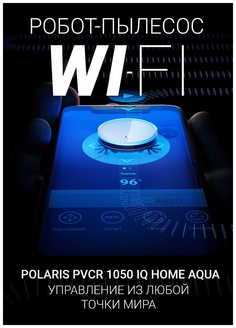 - + 1. Подключение к Wi-Fi. Робот-пылесос PVCR 1050 WI-FI IQ Home Aqua Polaris оснащен возможностью подключения к Wi-Fi, что позволяет управлять устройством и контролировать его удаленно через приложение для смартфона. Эта функция обеспечивает удобство и гибкость, поскольку вы можете планировать уборку, настраивать параметры и получать уведомления, даже когда вас нет дома.
