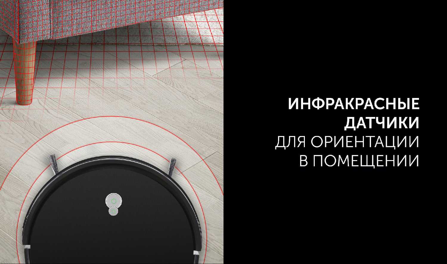 - Заезжает под мебель, кровати и шкафы благодаря низкому корпусу.