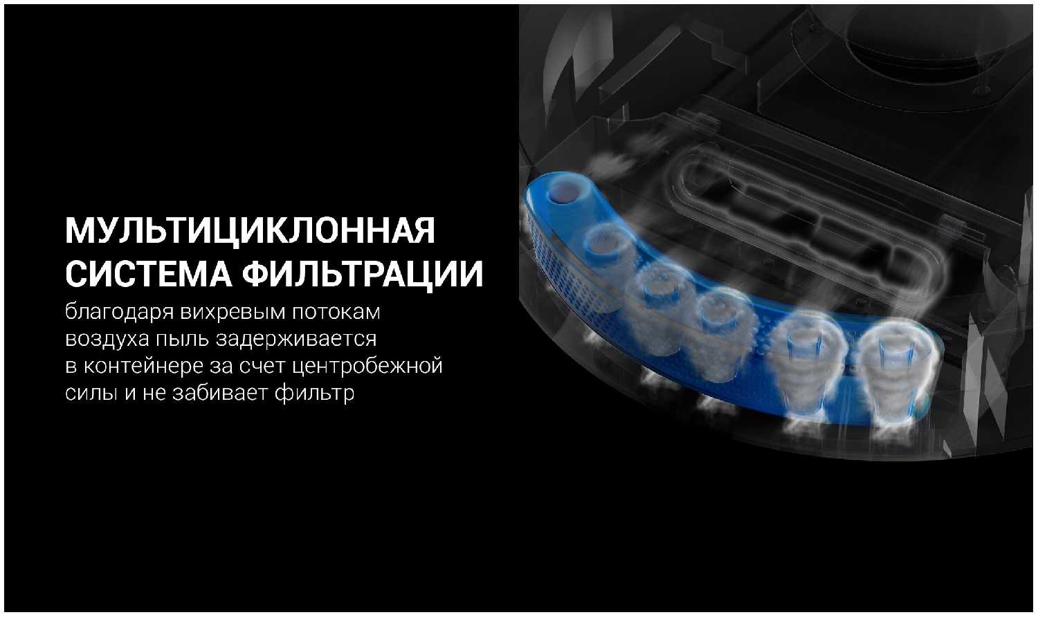 -Мощный всасывающий модуль, собирает пыль, волосы и мелкий мусор.