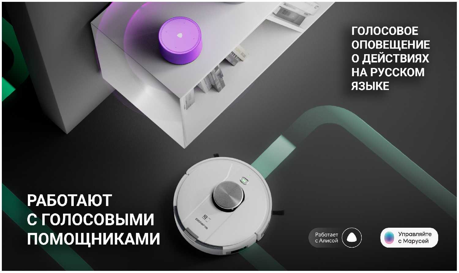 - Голосовое управление и удаленный запуск через приложение Polaris IQ Home.