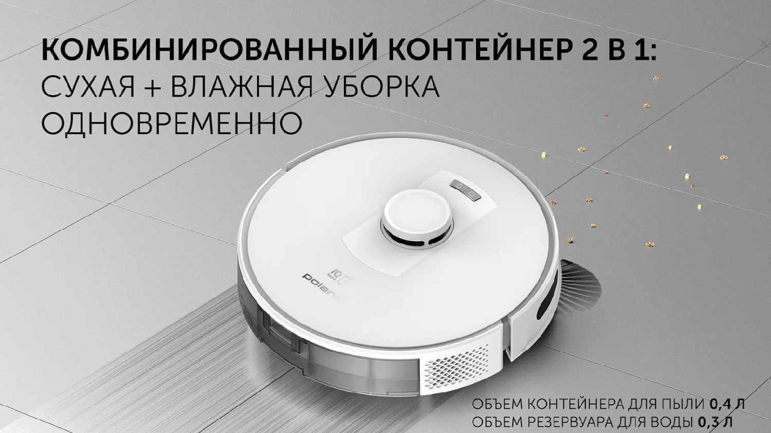 Кроме того, робот-пылесос Polaris имеет очень большую производительность батареи. Его хватает на долгое время работы, что позволяет ему полностью очистить дом, даже если он большой площади. - - Несмотря на все положительные стороны, у робота-пылесоса Polaris есть несколько недостатков.