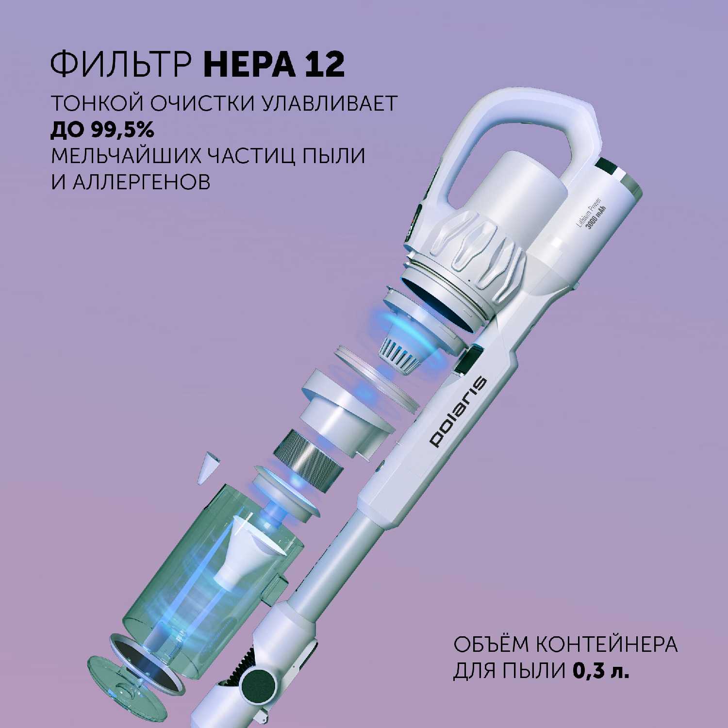 - 5-ступенчатая система с HEPA-фильтром класса H13, улавливающим 99.95% частиц размером от 0.1 мкм, включая пыльцу и шерсть.