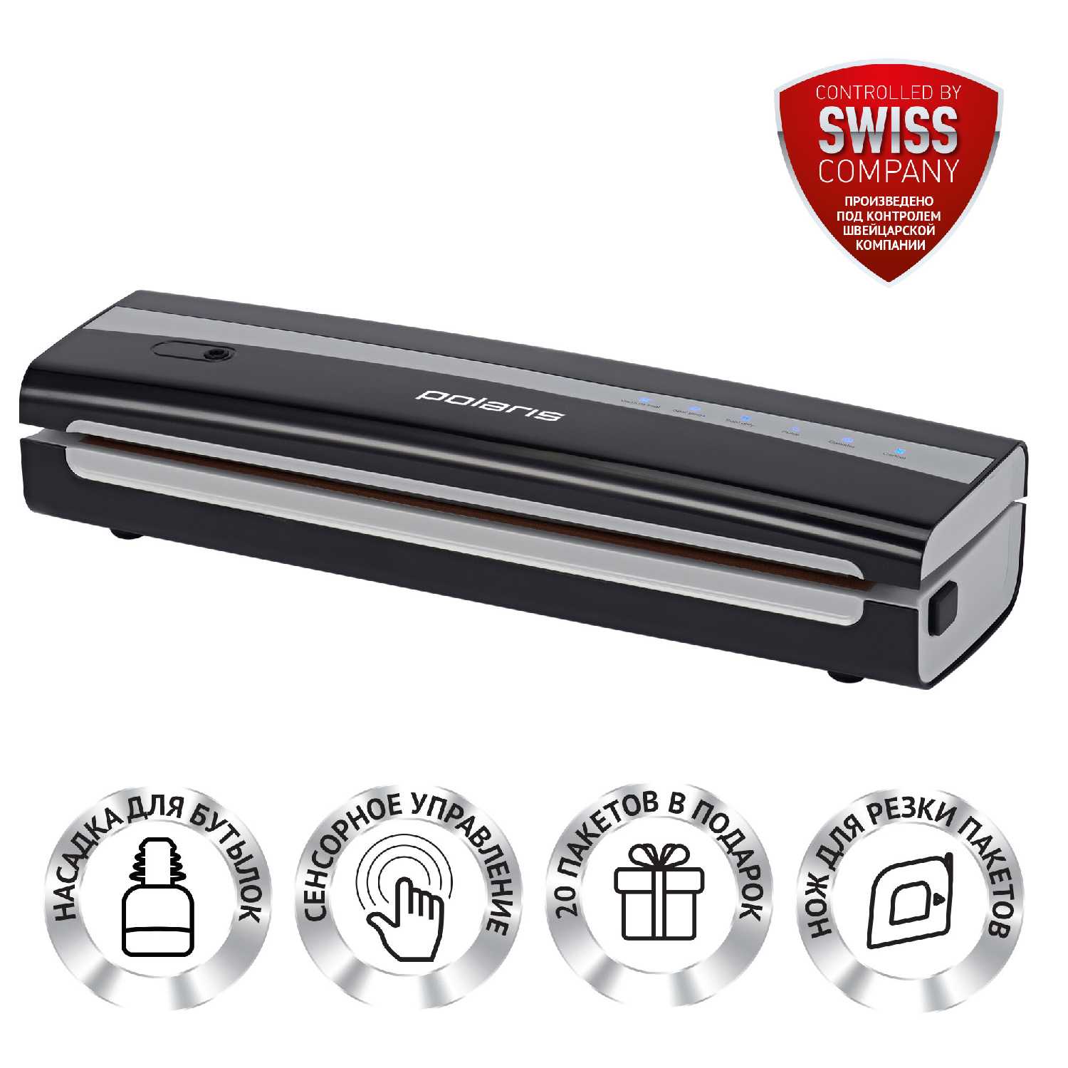 - + Очень качественное исполнение, комплектация супер, пакеты в подарок. Сразу же оценила мощность и качество работы. Это очень классный вакууматор от бренда Polaris! Рекомендую!