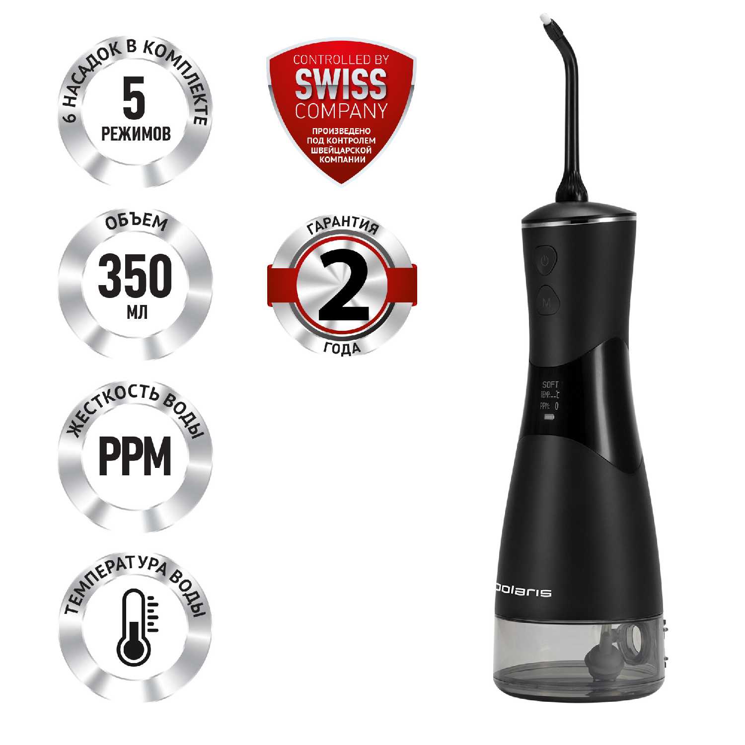- + Вместительный резервуар, шесть насадок (три стандартных, различающиеся по цвету, одна для языка, одна для протезов и одна с щетинками). Информация по температуре жидкости добавляет комфорта в использовании. Чехол для транспортировки. Заявлено два года гарантии