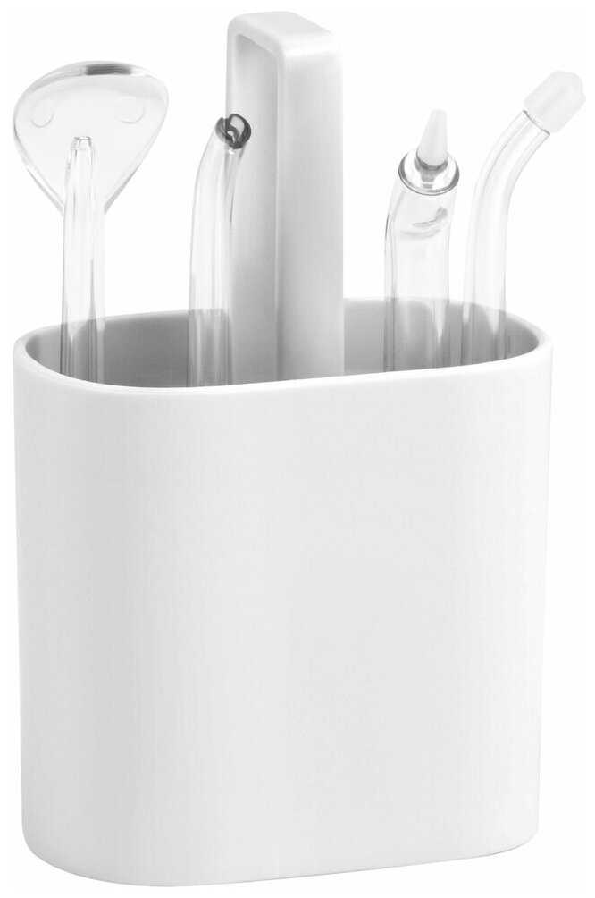 - + Мощность, большое количество насадок, простота управления, емкий бак для воды. Порадовало наличие ИК лампы как дополнительного дезинфектора. Каждая трубочка имеет цветное кольцо, чтобы не спутать. Удобное и магнитное крепление ручки к аппарату. И то, что есть дополнительный контейнер для трубочек (точно не потеряются).