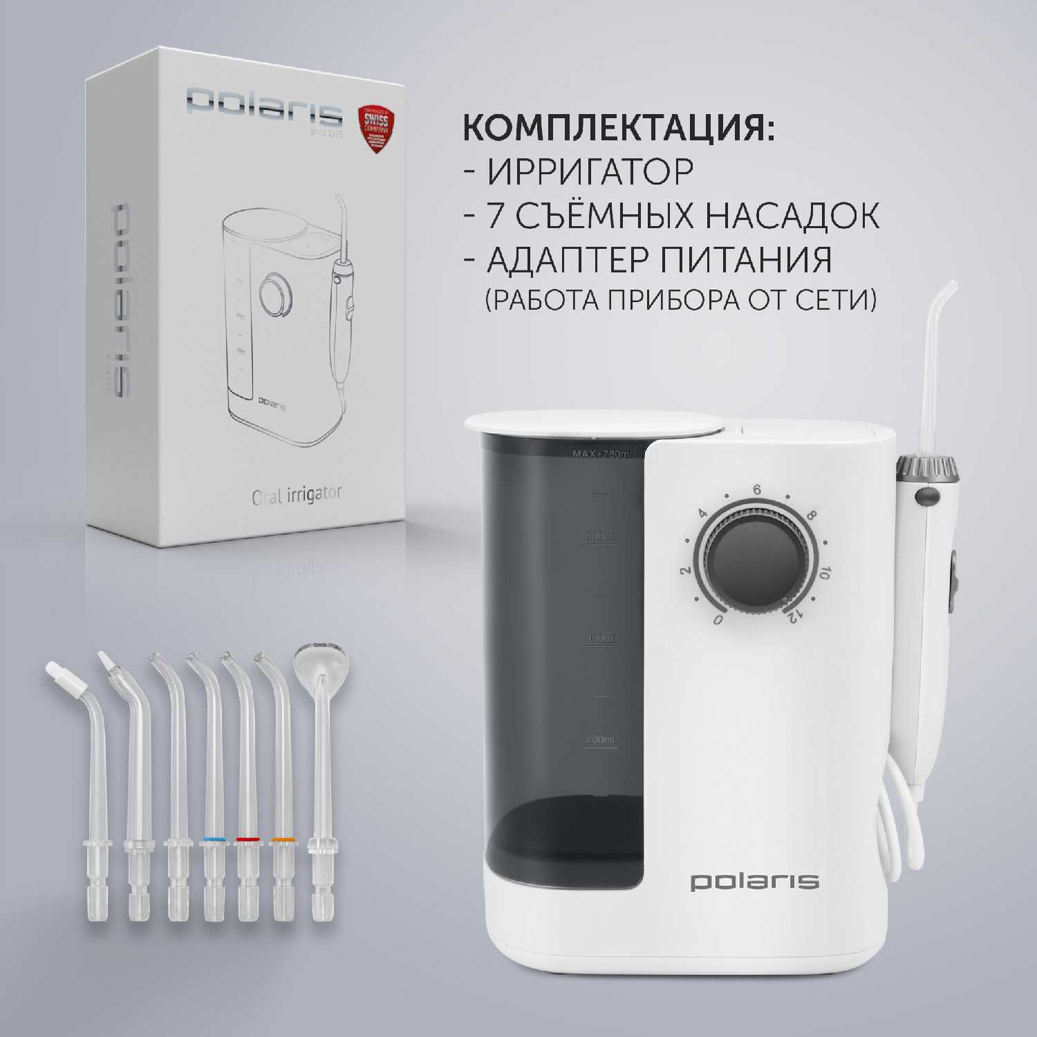 Ортодонтическая насадка целенаправленно очищает труднодоступные участки вокруг брекет-систем и под мостами, что подтверждают пользователи с ортодонтическими конструкциями. Пародонтологическая насадка эффективно прочищает десневые карманы у имплантов без травмирования тканей. Мощная регулируемая струя (до 12 уровней давления) вымывает даже плотно застрявшие частицы пищи, недоступные зубной нити. -