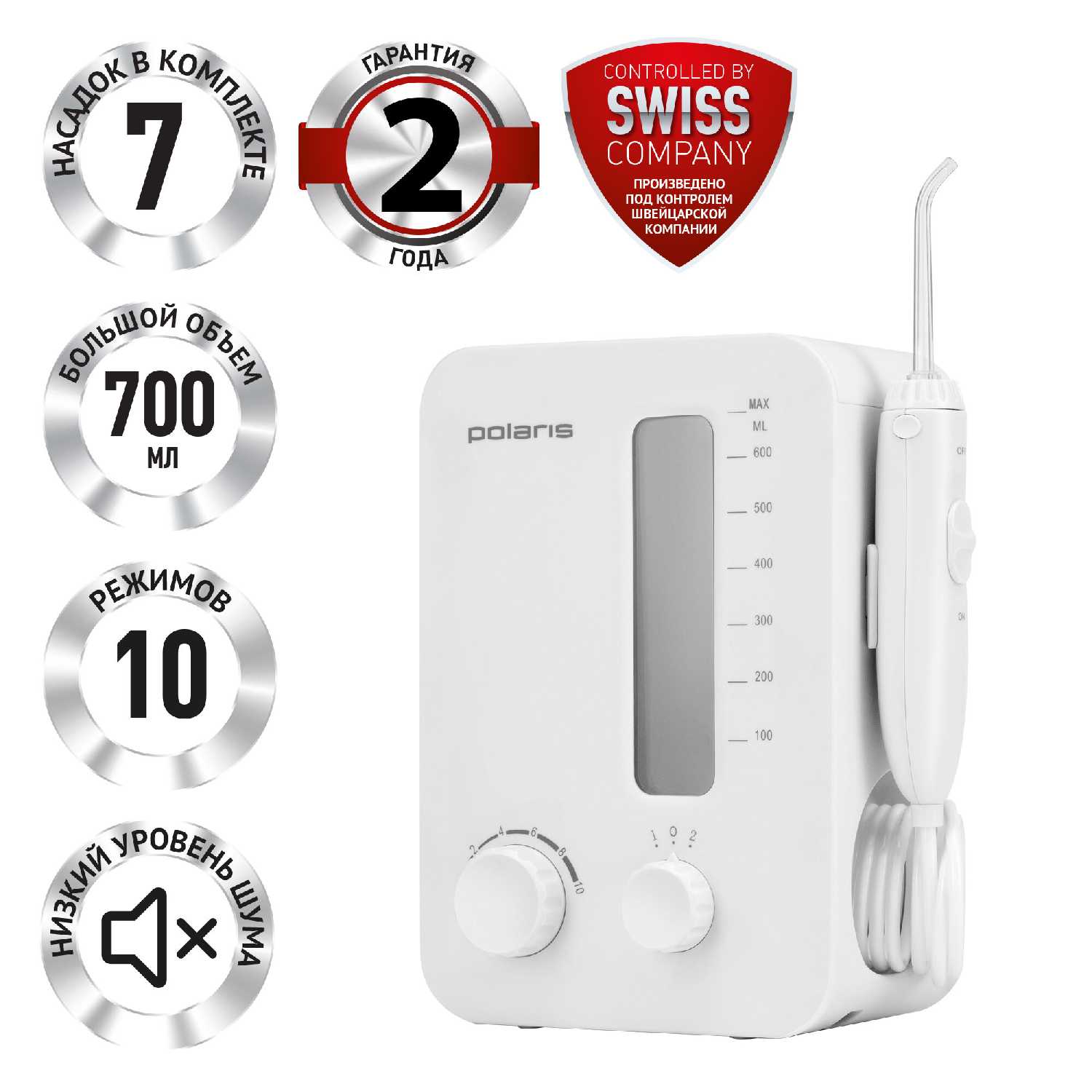 Ирригатор оснащен прогрессивной системой регулировки давления воды, предлагающей 10 отдельных режимов. Это позволяет каждому пользователю индивидуально подобрать интенсивность, от очень мягкой до мощной, полностью исключая дискомфорт или травмирование десен. Люди с повышенной чувствительностью, а также те, кто ухаживает за имплантами или коронками, отмечают комфортность использования при правильно подобранном режиме.
