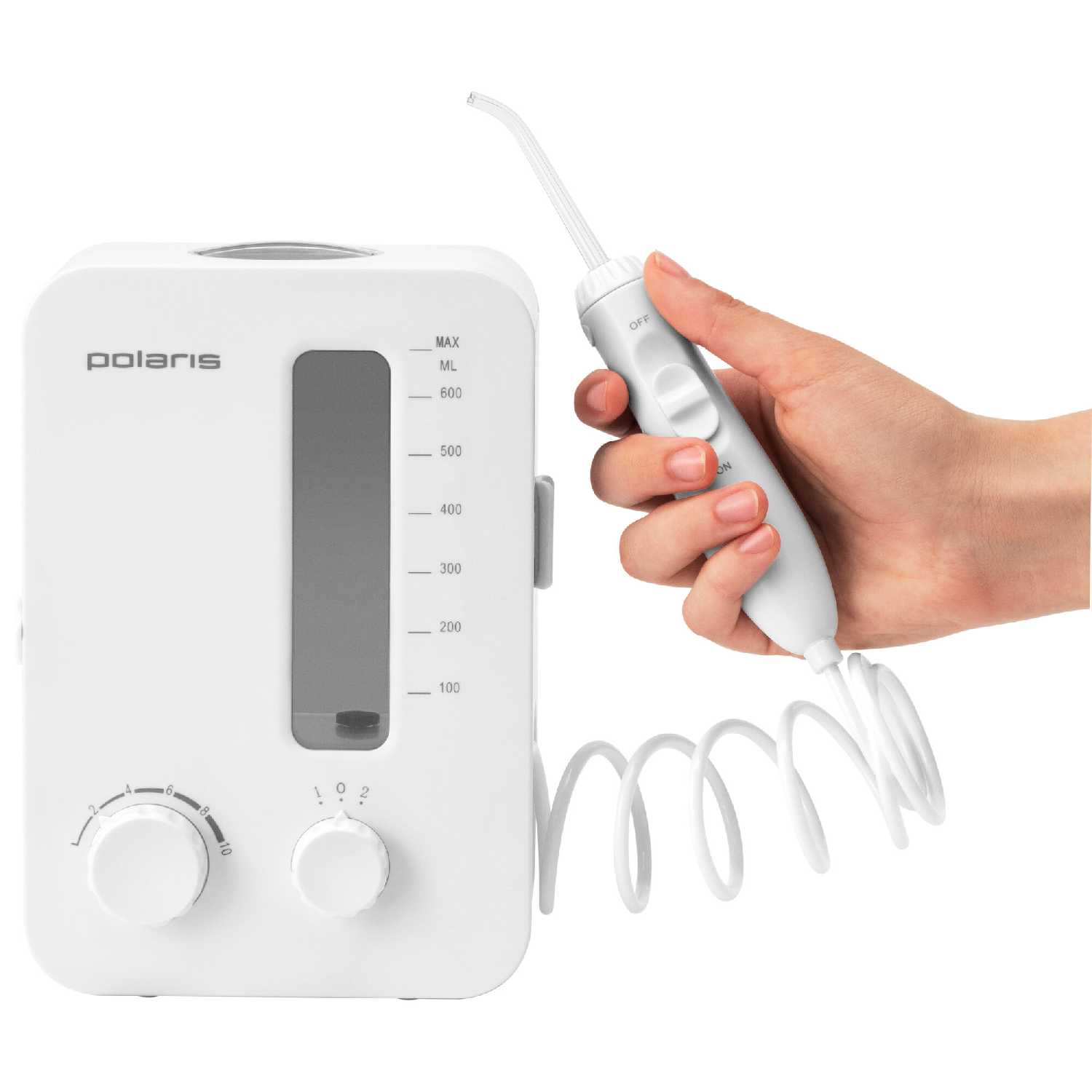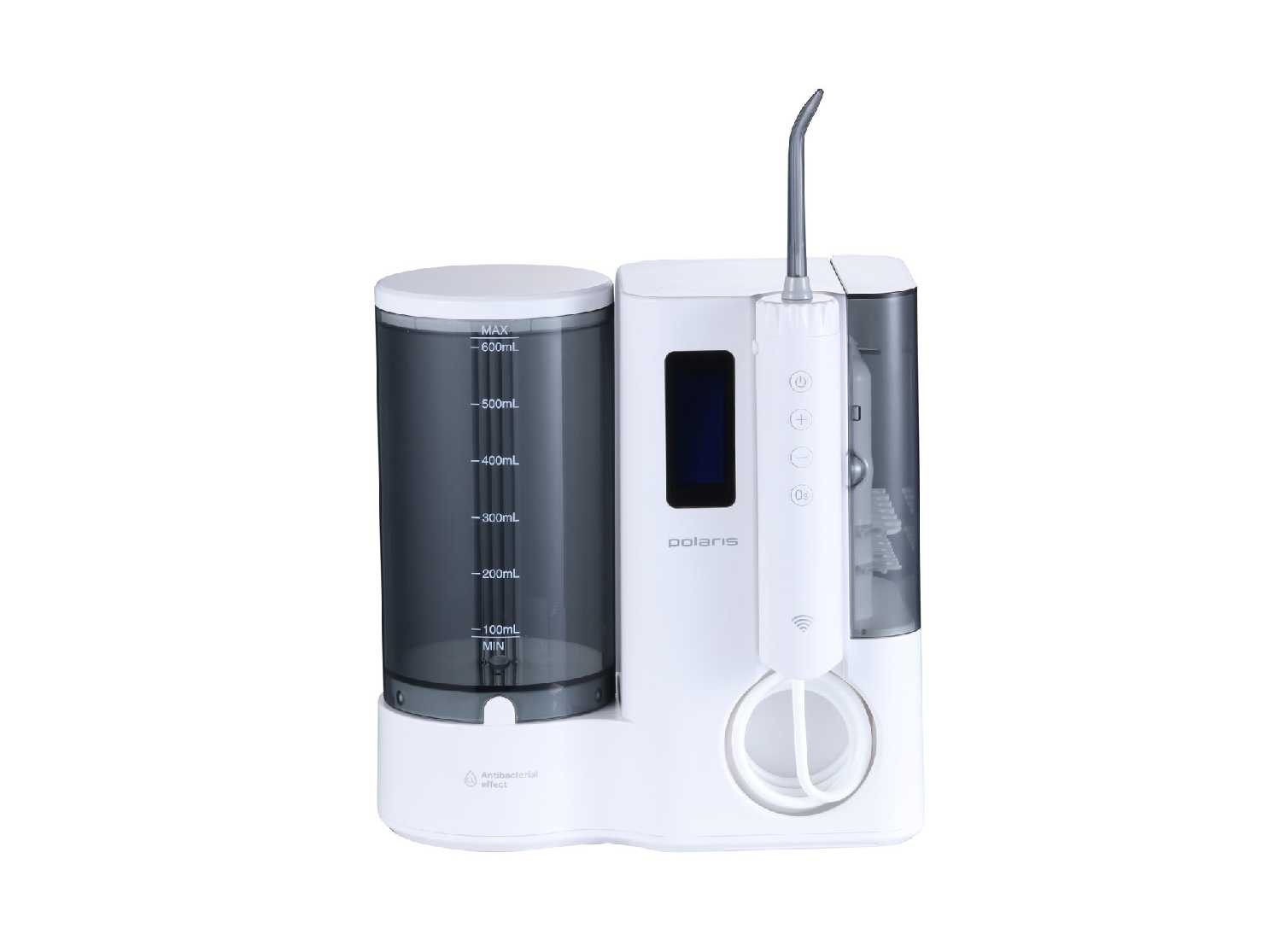 - Десять ступеней регулировки давления воды позволяют точно настроить интенсивность струи под индивидуальную чувствительность десен, исключая дискомфорт и травмирование.
