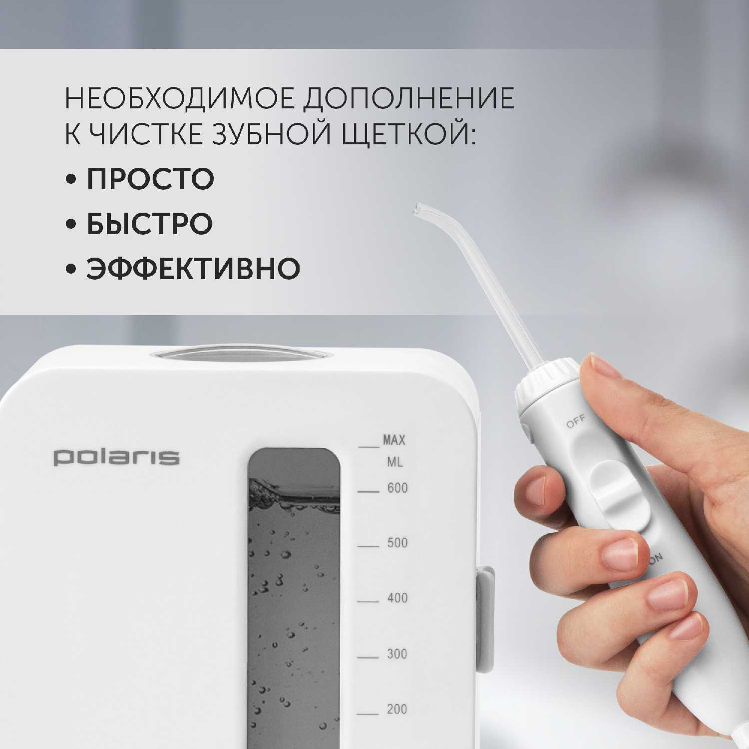 Корпус ирригатора выполнен из прочного качественного пластика и обладает устойчивой конструкцией. Во время работы, даже на максимальных режимах мощности, прибор надежно стоит на поверхности, не дребезжит и не прыгает. Сборка оценивается пользователями как крепкая, без люфтов и скрипов. Магнитное крепление ручки также добавляет общей устойчивости и порядка на рабочей поверхности.
