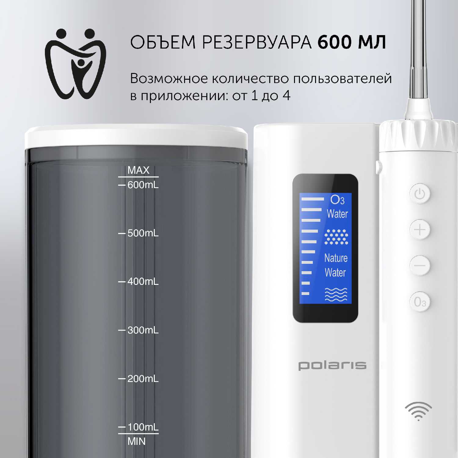 Фактический объем резервуара составляет 600-700 мл, что подтверждается пользователями. Этого объема достаточно для двух полноценных циклов чистки продолжительностью по 2-2,5 минуты каждый, что идеально для пары. Для одного человека воды хватает с большим запасом, многие заполняют резервуар лишь наполовину. Прозрачный корпус или метки на бачке позволяют легко контролировать уровень воды. -