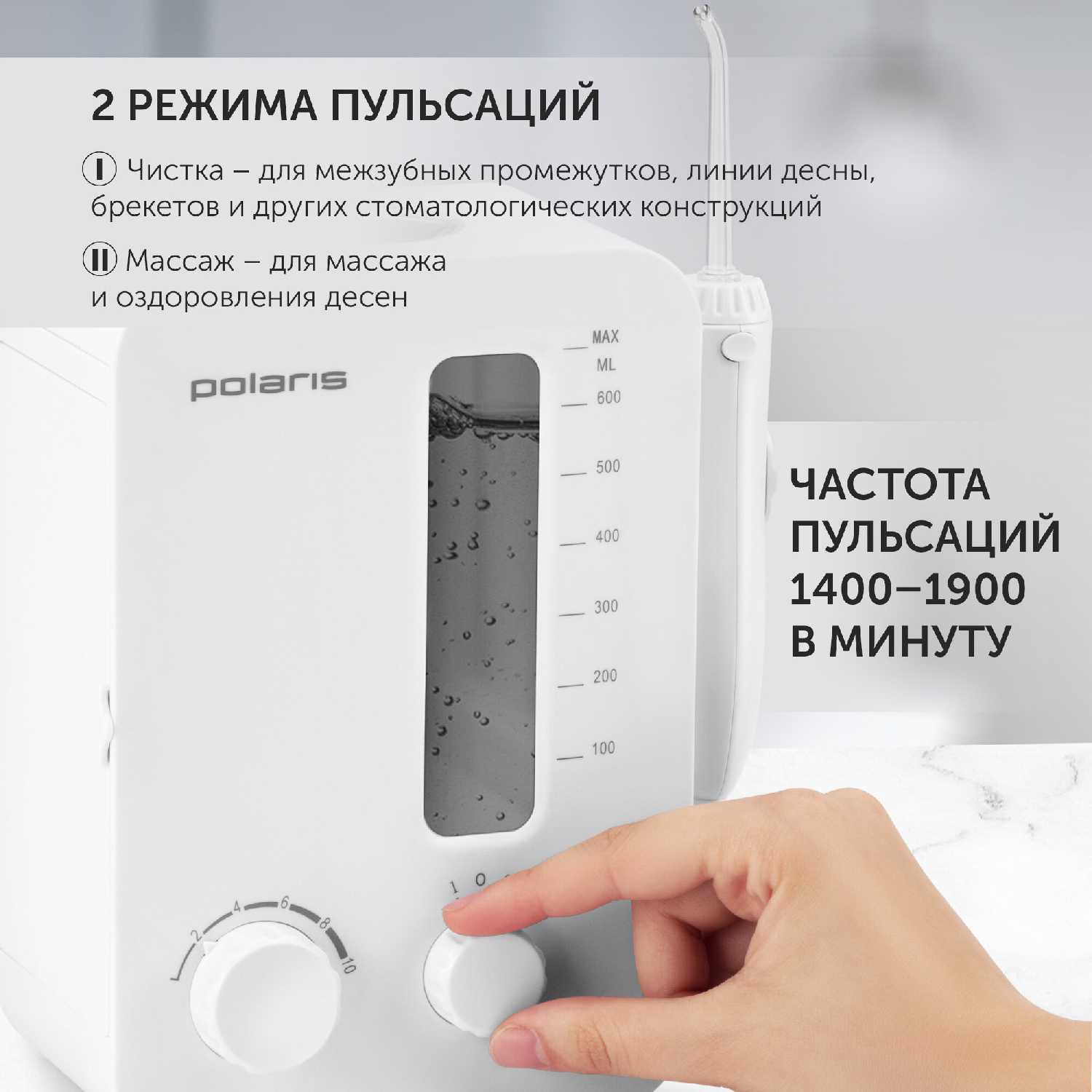 Режим «массаж» использует особый пульсирующий поток воды, который не только очищает, но и мягко массирует десны. Пользователи отмечают, что этот режим улучшает кровообращение, способствует укреплению десневой ткани и является профилактикой пародонтологических заболеваний. Многие применяют его курсами, например, несколько раз в неделю, в то время как режим «чистка» с его направленной мощной струей предназначен для ежедневного удаления зубного налета и остатков пищи. -