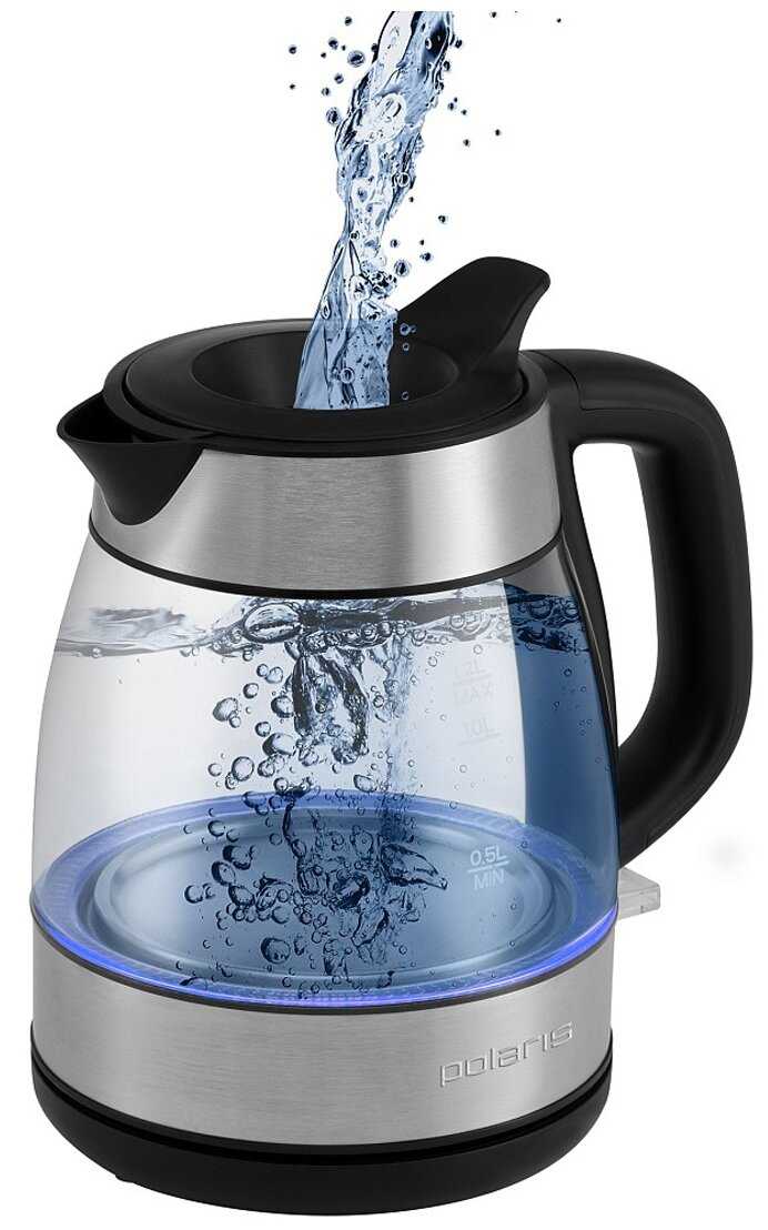 - Синяя LED-подсветка активируется при кипячении, создавая декоративный эффект.