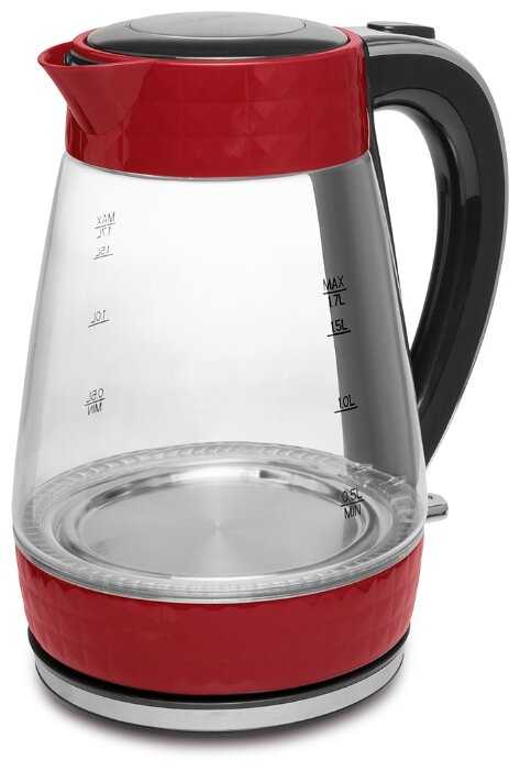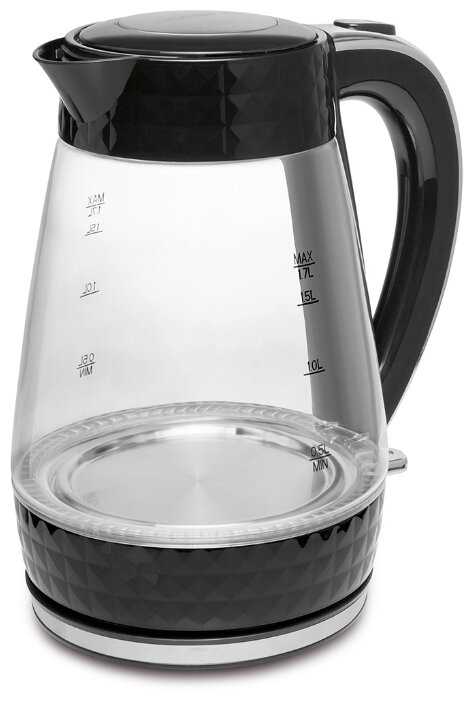 - Стеклянный корпус позволяет наблюдать за процессом кипения, сочетается с матовым пластиком и металлическими вставками.