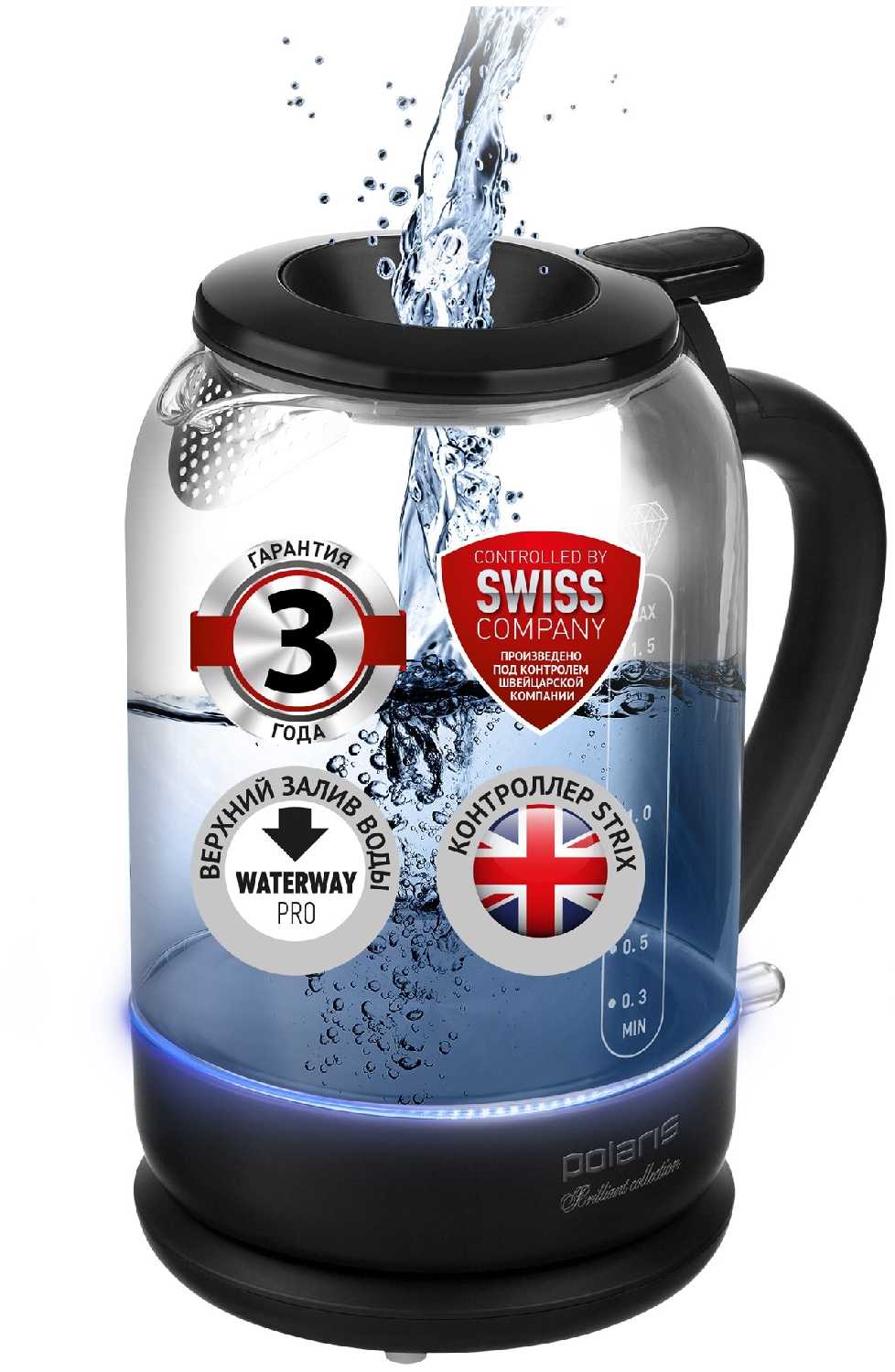 - Контроллер Strix (Великобритания) гарантирует точное отключение при закипании и защиту от перегрева.