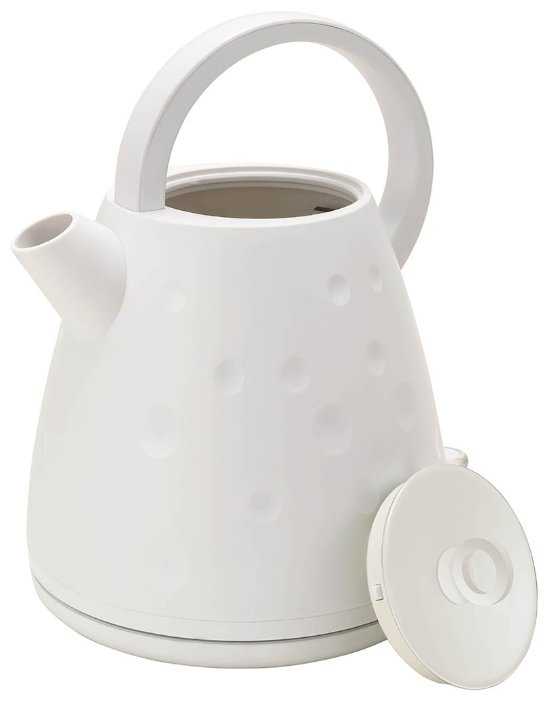 Красивый, стильный, необычный дизайн. Чайник работает бесшумно, кипятит воду быстро. Крышка легко вынимается и вставляется. Ручка во время работы не нагревается совершенно. Вода из носика льётся аккуратно. Ничего не капает и не подтекает. Рекомендую к покупке.