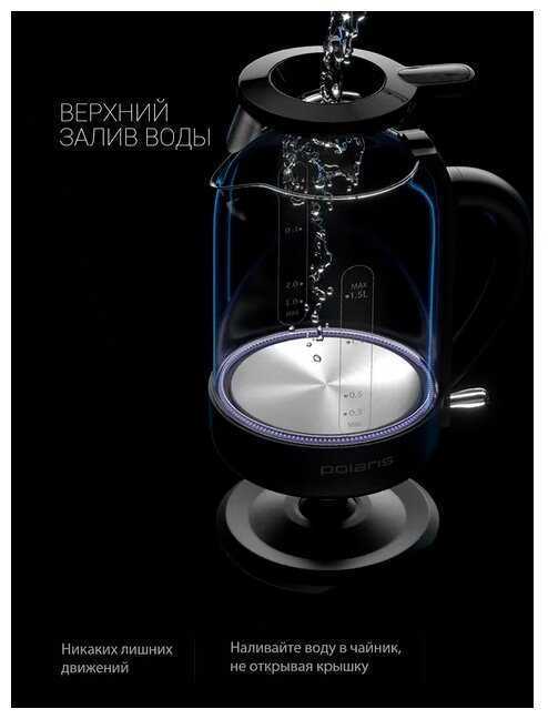 - + Оригинальный способ залива воды, лаконичный дизайн, подсветка, не обжигает руку паром при наливе воды