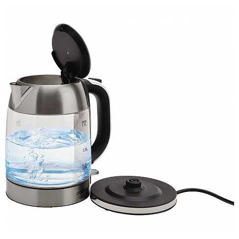 - Чайник кипятит 1.7 л воды за 5–6 минут благодаря мощности 2200 Вт.