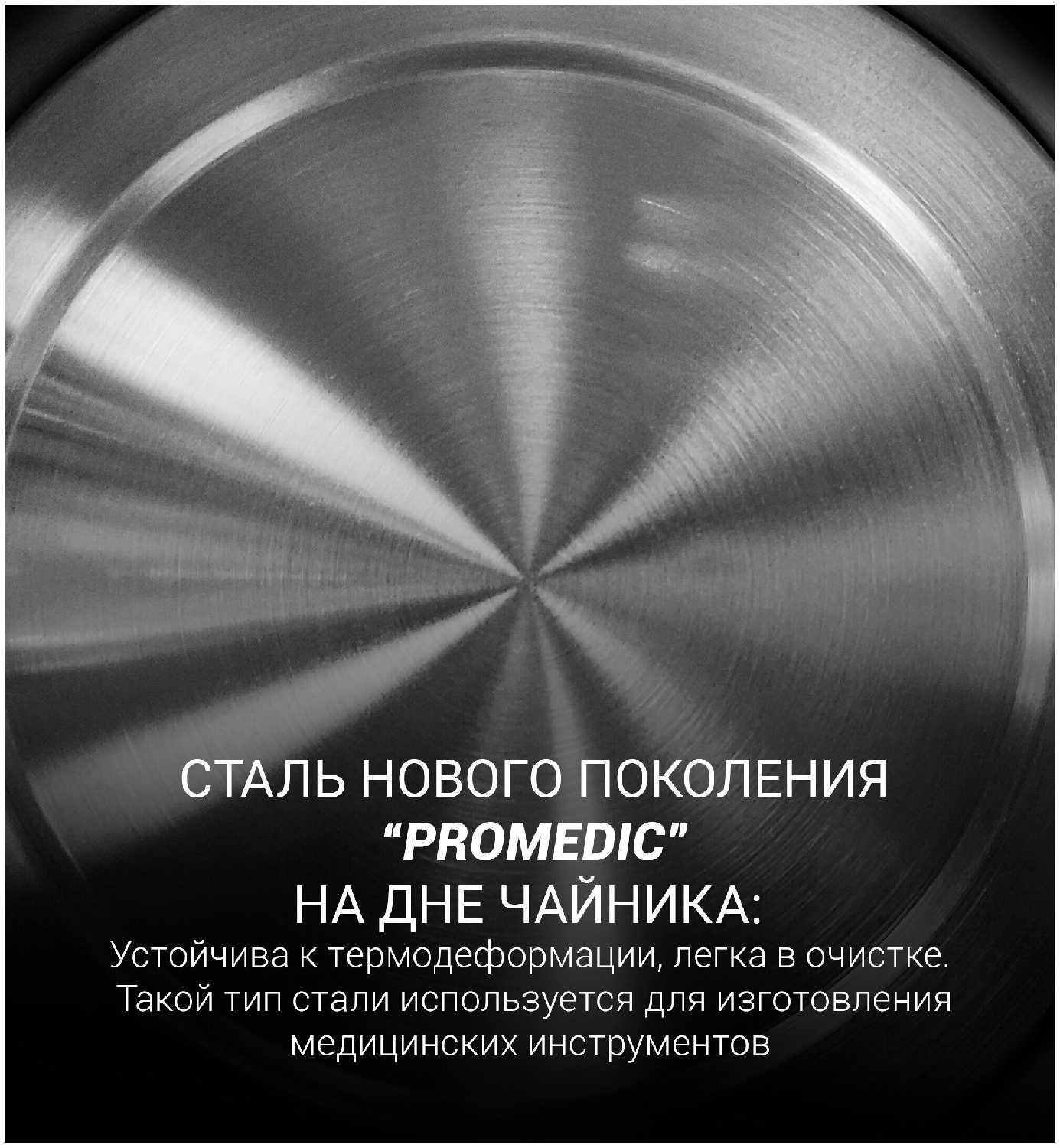 - Шум снижен за счёт закрытого нагревательного диска, что позволяет использовать чайник в помещении без помех для разговоров.