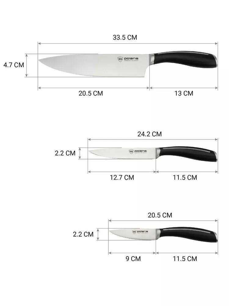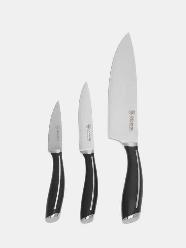Преимуществами стали монолитная конструкция (в отличие от моделей с заклепками), антискользящие рукояти с анатомическим профилем и продуманный баланс. Пользователи, сравнивавшие Polaris с Tefal, отмечают лучшую остроту и долговечность стали. -
