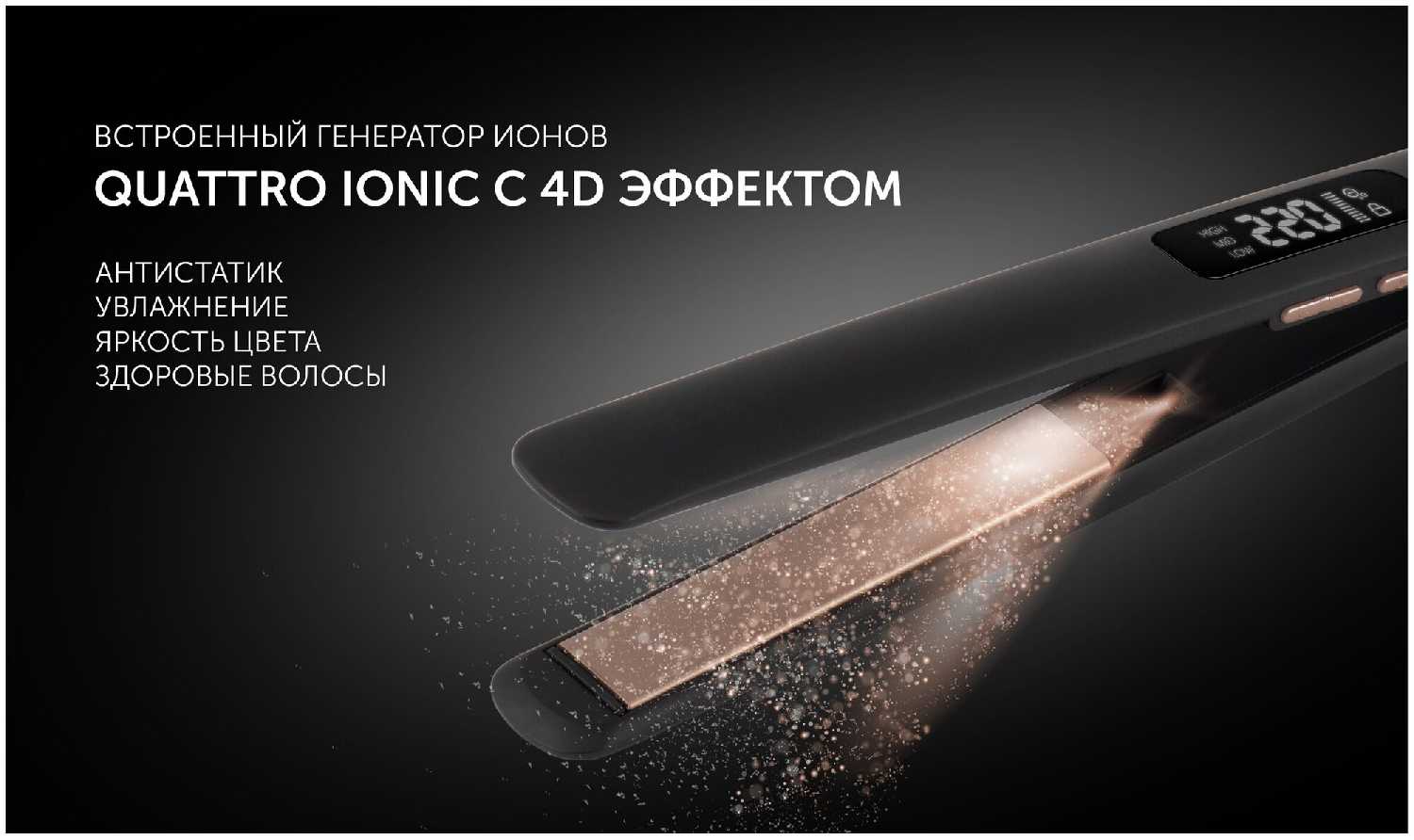 - LED-дисплей четко показывает текущую температуру, помогая подобрать оптимальный режим без вреда для волос.