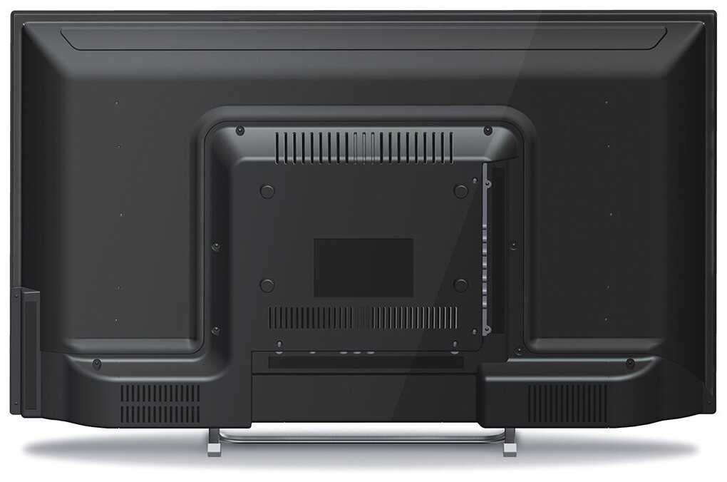 Конструкция, эргономика и варианты установки: Корпус массой ~5 кг выполнен из тонкого пластика, что обуславливает гибкость рамки экрана и вибрации при механическом воздействии. Подставка в форме U-образного металлического прутка крепится на четыре винта, но резьбовые отверстия на тыльной панели могут иметь производственные дефекты. Для настенного монтажа используется нестандартное VESA 100×100 мм (вопреки заявленным 100×200 мм), с верхним расположением крепежных точек — это ограничивает использование поворотных кронштейнов из-за риска повреждения. Пульт ДУ с крупными кнопками и отдельной клавишей сна (Sleep) удобен для пожилых пользователей, но инфракрасный датчик требует точного наведения на расстоянии свыше 4 метров. Отсутствие органов управления на корпусе вынуждает полагаться исключительно на пульт.
