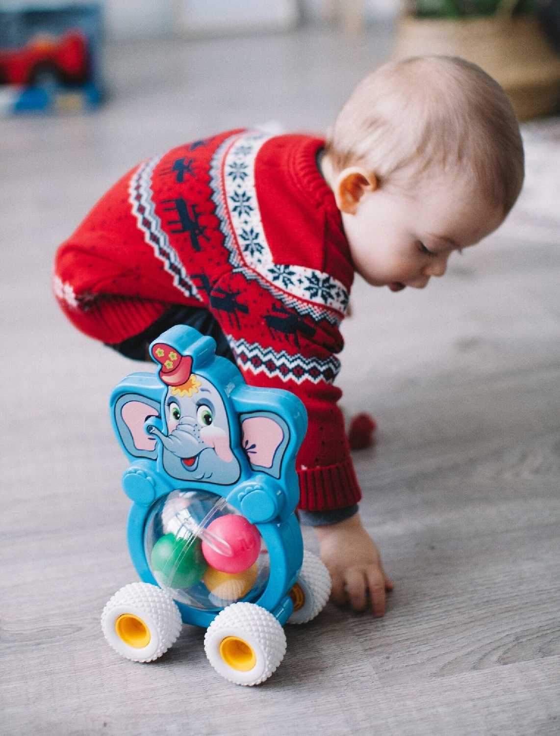 - + Яркий, большой слон. Не переворачивается,когда ребёнок с ним идёт, шарики крутятся, хорошие прочные колёса. Игрушка не хлипкая
