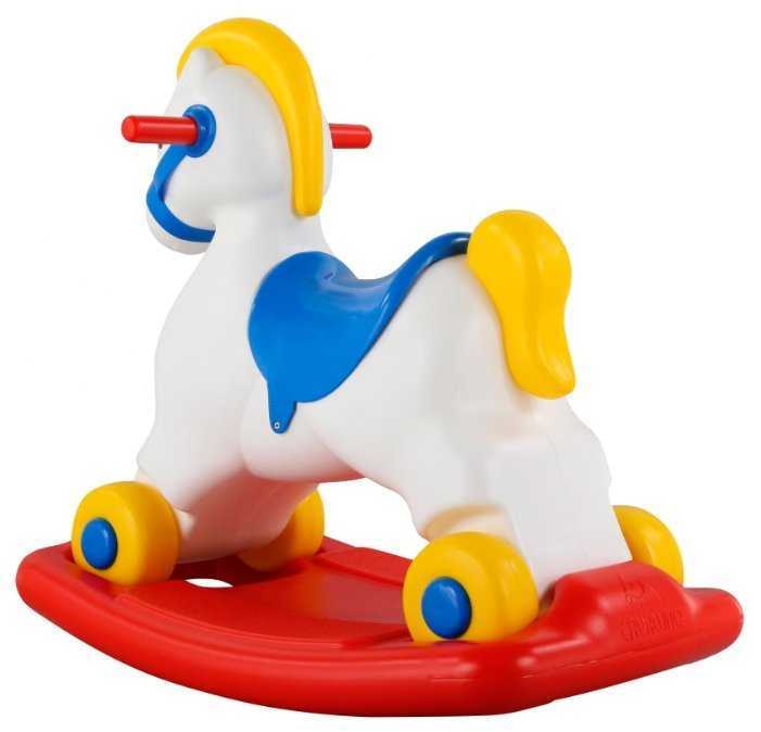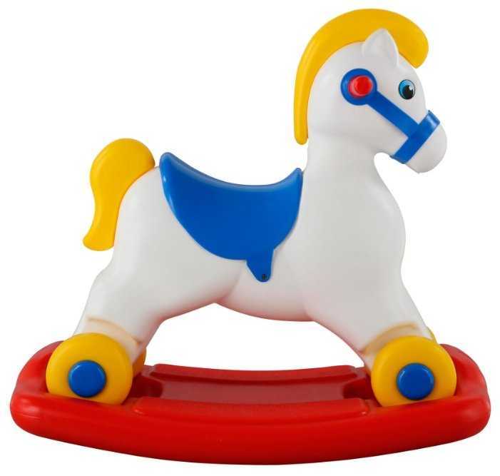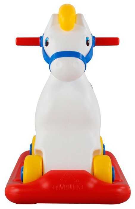 - + Лошадка хорошая, удобно совмещены каталка и качалка, крепкий пластик корпуса.
