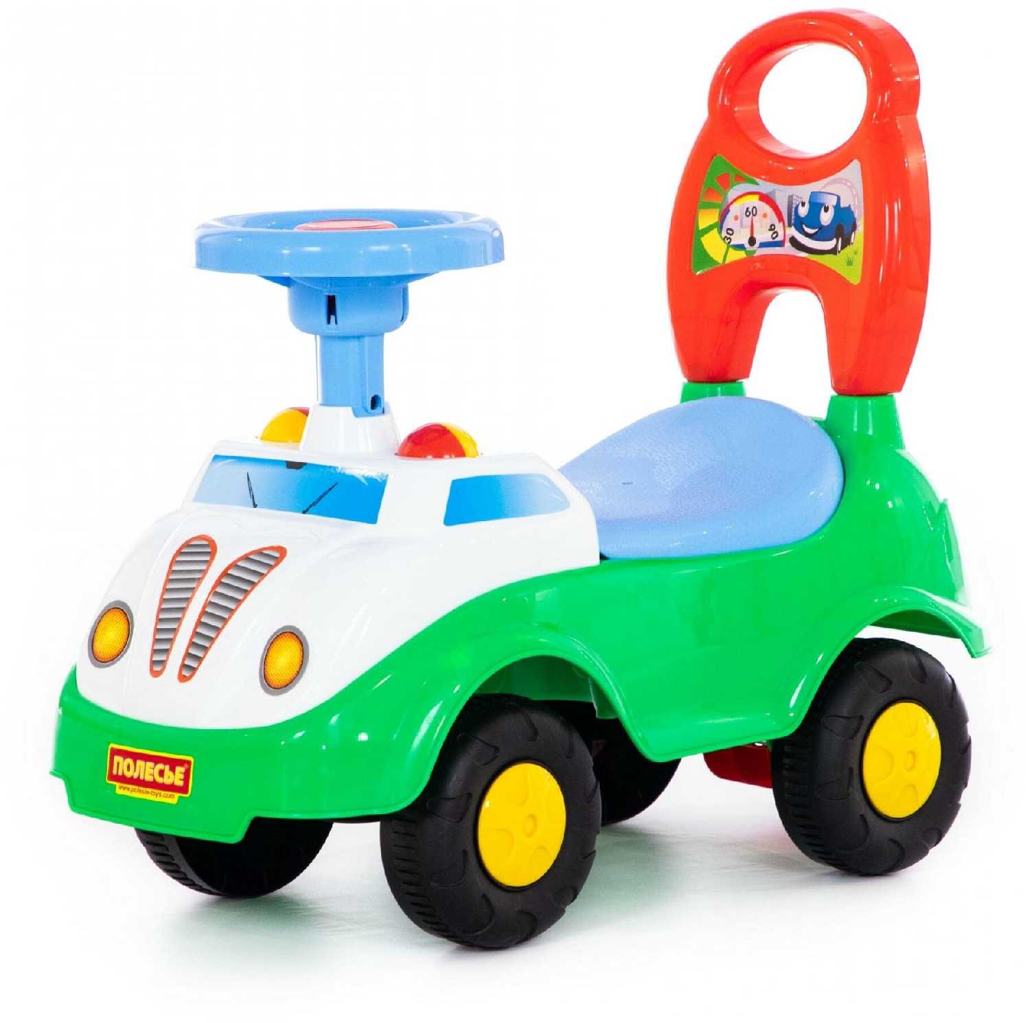 - + Маленькая, легкая, удобная машинка для малышей, максимум лет до 2 хватит. Яркая, мне понравилась.